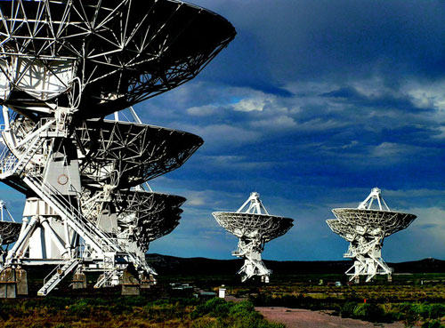 甚大阵射电望远镜座落于美国新墨西哥州索科洛,于1980年建成并投入使用。甚大阵由27面直径25米的抛物面天线组成,呈Y型排列。天文学家可以利用甚大阵来研究黑洞、星云等宇宙各种现象。甚大望远镜是一组光学望远镜阵列。它包括了4个8.2米的望远镜,阵列中每个都是一个大型望远镜,而且每一个都能独立工作,并具有捕获比人类肉眼观测到的光线弱40亿倍的光线,这比南非大望远镜能捕获的最弱光线还弱四倍。甚大阵望远镜能够把最多3个望远镜集中在一起形成独立单元,通过地下的镜片将光线组合成一个统一的光束,这使得望远镜系统能够观测到比单个望远镜分辨率高25倍的图像。