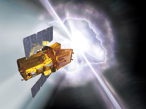 “雨燕”(Swift)观测卫星发射于2004年,主要是用来研究伽玛暴现象。“雨燕”可在短短的一分钟内自动观测到伽玛暴现象。到目前为止,它已经发现了数百次伽玛暴现象。“雨燕”卫星实际上是一颗专门用于确定伽马射线暴起源、探索早期宇宙的国际多波段天文台。它主要由三部分组成,分别从伽马射线、X射线、紫外线和光波四个方面研究伽马射线暴和它的耀斑。在多年的运行中,“雨燕”卫星先后共10次捕捉到以极快角速度运行的伽马射线暴,其中,最短的伽马射线暴只持续了50毫秒。目前,“雨燕”卫星可以检测到120亿光年以外单独的恒星参数。(刘妍)